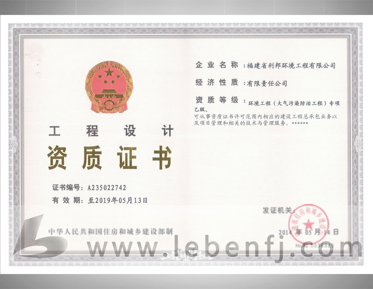 • 環(huán)境工程設(shè)計(jì)專(zhuān)項(xiàng)資質(zhì)(乙級(jí))